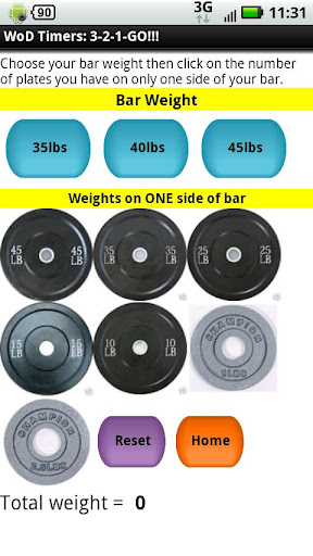 Ever lose track of how many rounds you've done during your AMRAP? I do all the time. Tired of trying to make chalk lines on the ground or putting beans in a cup? I was. I put together a timer that has a large button that you can easily press in between your rounds to keep count of your rounds. After that, I decided to add a separate Tabata counter/timer to keep track of your work/rest intervals as well as reps per round, user-adjustable interval timer, rest-specific interval timer, 20-lap timer, "Death By" timer, weight calculator and a general stopwatch with four timers on the same page. With links to view the Hero and Lady WODs online. This is a comprehensive set of timers for use during your Crossfit workouts. The timers can also be used for stuff besides Crossfit, just use your workout imagination!